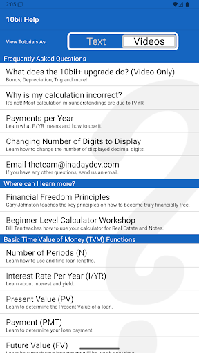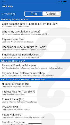 10bii Financial Calculator is a popular app with a ton of features and customization options. Here are five of our favorites: 1. Time Value of Money Calculations - Users can calculate loan payments, interest rates, and investment values with ease. The app displays the cash flow diagram for better visualization. 2. Uneven Cash Flow Analysis - A dedicated interface allows for easy entry, editing, and reordering of cash flows, with rapid calculation of Net Present Value and Internal Rate of Return. 3. Interest Rate Conversion - With a simple touch of a button, users can switch between Nominal and Effective interest rates. 4. Statistical Data Evaluation - Includes standard calculations such as standard deviation, mean, and linear regression forecasting. 5. User-Friendly Interface - The app displays current N, I/YR, PV, PMT, and FV values right above the buttons for easy reference, and offers video tutorials in the Help section.