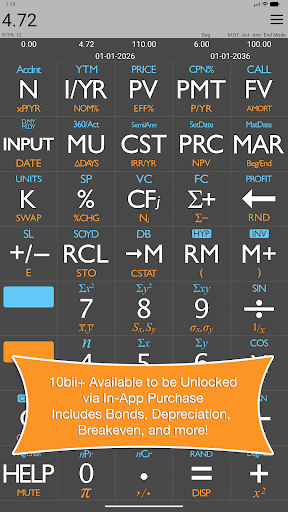 10bii Financial Calculator is a comprehensive financial application that allows users to perform complex financial calculations with ease. It offers a variety of features including Time Value of Money calculations, Uneven Cash Flow analysis, and statistical data evaluation. 10bii Financial Calculator can be used on mobile devices, making it a versatile tool for financial professionals, students, and anyone needing to perform detailed financial analysis. One of the best things about 10bii Financial Calculator is its intuitive interface that displays current values right above the buttons. This means that users can easily track their inputs and results. And, if you're using 10bii Financial Calculator on a mobile device, you can even save recent calculations for easy access later. Overall, 10bii Financial Calculator is an excellent application for financial analysis. Whether you're looking for loan payment calculations, interest rate conversions, or investment evaluations, it's a great option.