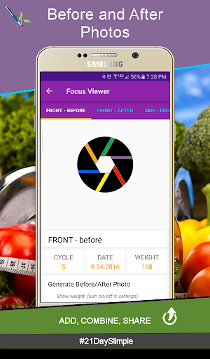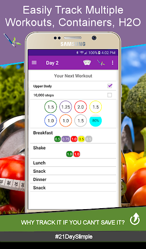 21 Day Slimple - The Easy Fix is a comprehensive health and fitness application designed to help users effectively track their 21 Day Program workouts containers and water intake. This app stands out by offering an all-in-one solution for tracking progress with features like base and extreme workout schedules meal planning hydration reminders and progress reports. Available on mobile platforms this app provides users with the tools needed to maintain a disciplined fitness routine. One of its unique advantages is the ability to switch between different cycles and meal plans allowing for personalized adjustments throughout the program. Users can also track their before and after measurements including photos which can be combined and shared. With regular updates and accurate tracking features 21 Day Slimple ensures that users have a clear view of their progress making it an invaluable tool for anyone committed to improving their health and fitness over a 21-day period