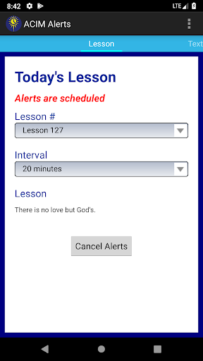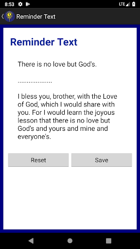 ACIM Alerts with Workbook is a specialized application designed to assist students of A Course in Miracles in their daily practice. This app provides users with convenient access to the full Workbook for Students which includes 365 lessons and reviews aimed at training the mind towards forgiveness and inner peace. The app's standout feature is its customizable reminder system that helps users maintain consistency in their practice by sending preset alerts at recommended intervals throughout the day. These reminders can be tailored to individual preferences including start and end times alert frequency and sound settings. Additionally users have the ability to modify reminder texts allowing for personal reflections within specific lessons. Another valuable tool is the built-in meditation timer which supports timed contemplation as suggested by certain lessons or as preferred by the user. With an optional setup alert ten minutes before lesson start time users are further supported in maintaining their daily practice routine. Available for a one-time purchase across all devices ACIM Alerts with Workbook serves as an essential companion for those committed to deepening their understanding and practice of A Course in Miracles.