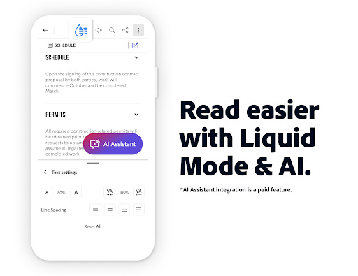 Adobe Acrobat Reader is a popular app with a ton of features and customization options. Here are five of our favorites: 1. AI-Powered Document Assistance - The new Adobe Acrobat AI Assistant allows users to ask questions about their PDF content and receive cited answers, including details from charts and graphs. This feature also supports voice commands and generates instant summaries, streamlining document review processes. 2. Advanced PDF Editing Tools - With its robust PDF editor, users can edit text, fix typos, add paragraphs, and modify images directly in their PDF files. This functionality ensures documents remain polished and professional. 3. Secure File Management - Adobe Acrobat Reader provides secure storage options by linking to cloud services like Google Drive, Dropbox, and Microsoft OneDrive. Users can also password-protect sensitive PDFs, ensuring data privacy. 4. Seamless Collaboration Features - The app enables real-time collaboration through shared workspaces called PDF Spaces, where teams can store, annotate, and discuss multiple files in one place. Additionally, @mentions and activity notifications enhance teamwork efficiency. 5. Cross-Platform Accessibility - Available on both mobile and desktop platforms, Adobe Acrobat Reader ensures users can access their files anytime, anywhere. Its Liquid Mode optimizes PDF viewing on smaller screens, offering adjustable font sizes and improved navigation.