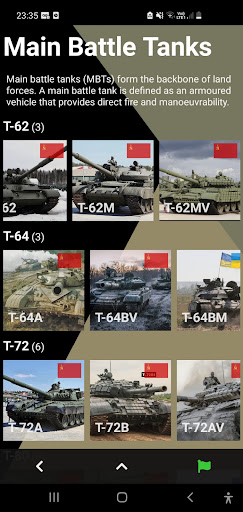 AFV Recognition is a comprehensive military vehicle identification application designed for both professional military use and enthusiast learning. This specialized reference tool allows users to accurately identify over 100 armored fighting vehicles, predominantly from Russian and Soviet inventories, through detailed AFV cards that include high-quality images, technical specifications, and distinctive recognition features. The app's offline functionality makes it particularly valuable for field operations, while its extensive database covers all major vehicle categories including Main Battle Tanks, Infantry Fighting Vehicles, and Air Defense systems. What sets AFV Recognition apart is its integration of expert knowledge from serving NATO JTAC-Instructors and military professionals, ensuring the information's accuracy and relevance. The application's structured approach, featuring comparison guides, knowledge quizzes, and categorized content, creates an effective learning system for mastering armored vehicle identification skills.