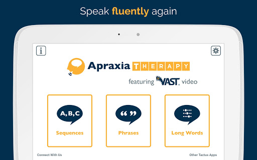 Apraxia Therapy stands out as a feature-rich app tailored for speech rehabilitation. Here are five key highlights 1. Evidence-Based Design - Developed by experts the app incorporates proven speech therapy techniques ensuring reliable and effective treatment methods. 2. Unlimited Practice Opportunities - Users can access countless hours of therapy sessions featuring 110 conversational phrases 60 long words and 5 automatic sequences all within a single package. 3. Video-Assisted Speech Technology VAST - Professionally produced videos guide users through mouth movements sounds and other cues promoting fluent speech at varying difficulty levels and speeds. 4. Customizable User Experience - The app allows personalized adjustments including speed difficulty and more catering to individual needs whether for mild moderate or severe cases of aphasia apraxia or autism. 5. Seamless Integration into Therapy Programs - With emailed reports automatic speech recordings and compatibility across home and clinical environments Apraxia Therapy supports comprehensive therapy management without any recurring costs or subscriptions.