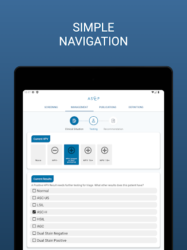 The ASCCP Management Guidelines app offers numerous valuable features for medical professionals Here are five key characteristics that make this application stand out 1 Risk-Based Recommendations - The app provides precise risk estimations for different patient scenarios helping clinicians make informed decisions about necessary interventions 2 Comprehensive Guideline Access - Users can directly access complete guideline articles as published in the Journal of Lower Genital Tract Disease ensuring they have the most up-to-date information 3 Streamlined Navigation - The user-friendly interface allows healthcare providers to quickly find relevant information for specific clinical situations saving valuable time during patient consultations 4 Future-Proof Design - The guidelines framework supports the integration of new risk modifiers and emerging screening technologies as they become available 5 Multi-Scenario Support - The app covers various clinical contexts including initial screening post-colposcopy and post-treatment follow-up providing complete guidance for patient management