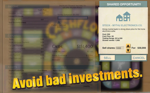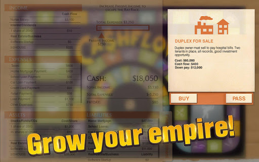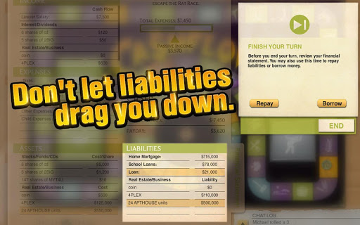 CASHFLOW is an educational application that allows users to develop financial strategies through simulated investments in real estate, business, and the stock market. It offers a variety of features including different professions, investment scenarios, and challenges like lawsuits or layoffs. CASHFLOW can be used on mobile devices, making it a versatile tool for learning financial literacy. One of the best things about CASHFLOW is that it gamifies the learning process. This means that users can enjoy mastering financial concepts while playing. And, if you're using CASHFLOW on a device with a screen larger than 6 inches, you can even have a more comfortable gaming experience. Overall, CASHFLOW is an excellent application for those looking to improve their financial knowledge. Whether you're interested in real estate, business, or stock market investments, it's a great option.