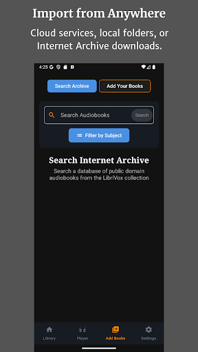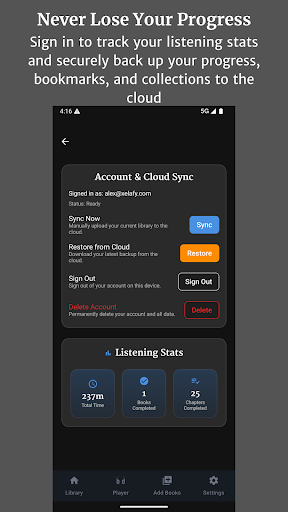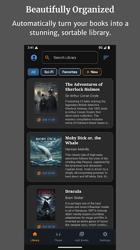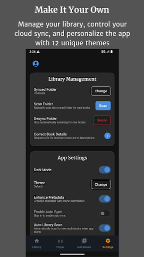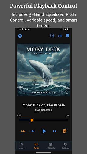 Audiobook Buddy is a comprehensive audiobook management application designed to transform your scattered audio files into an organized and visually appealing library. This app allows users to sync audiobooks from local folders and popular cloud services such as Google Drive, OneDrive, or Dropbox, creating a unified library with smart organization features. Audiobook Buddy offers advanced playback options including a 5-band Equalizer, Pitch Control, per-book speed settings, and a sleep timer, ensuring a personalized listening experience. The app supports background playback and provides full lock-screen controls, a mini player, and an optional home screen widget for convenient access. With support for multiple languages, customizable themes, and comprehensive file format compatibility, Audiobook Buddy caters to audiobook enthusiasts across different platforms. Whether you're looking to manage your personal library or explore public domain books, Audiobook Buddy delivers a seamless and feature-rich experience.