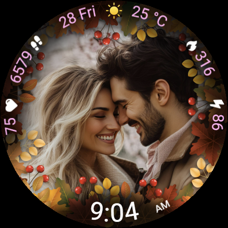 Autumn Photo Frames for WearOS is a lifestyle application that allows users to personalize their smartwatch with seasonal-themed photo frames. It offers a variety of features including 10 unique autumn-themed frames, custom photo support, and health metrics like heart rate and step counter. This watchface can be used on Wear OS 6 or newer devices, making it a versatile tool for those who want both style and functionality on their wrist. One of the best things about Autumn Photo Frames is its ability to display personal photos within beautifully designed frames, allowing users to carry cherished memories with them. And if you're using it on compatible devices, you can even customize color themes and access weather information. Overall, Autumn Photo Frames for WearOS is an excellent application for personalizing smartwatches. Whether you're looking for customization options, health tracking features, or stylish designs, it's a great option.