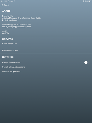 Aviation Mechanic O&P is an educational application specifically designed to help aviation mechanic candidates prepare for the crucial Oral and Practical exams required for FAA certification. This app provides a comprehensive question-and-answer format that covers all necessary practical skills and knowledge areas outlined in the FAA airman certification standards. Compatible with both Android phones and tablets, it serves as an essential study tool for those pursuing an Aviation Mechanic certificate with Airframe and Powerplant ratings. The app not only prepares users for examiner questions but also helps identify individual strengths and weaknesses, thereby increasing study efficiency. With content derived from the popular Aviation Mechanic Oral & Practical Exam Guide by Keith Anderson, published by Aviation Supplies & Academics (ASA), this resource ensures that candidates can exhibit subject mastery and confidence during their certification process.