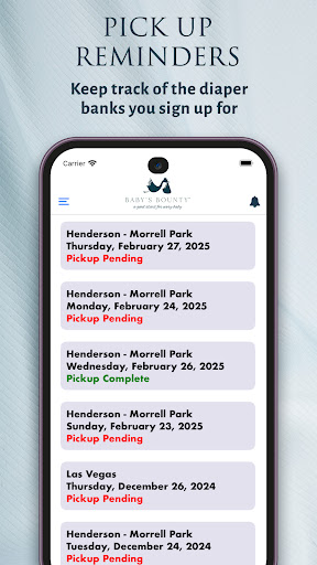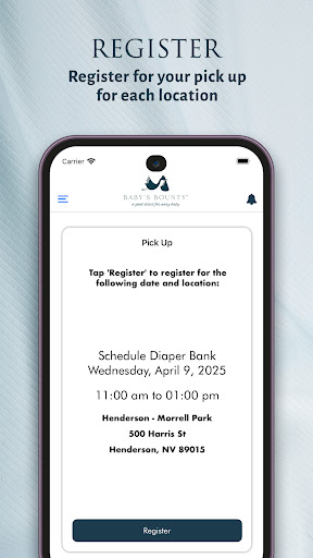 Baby's Bounty is a parenting application that helps families access essential diaper resources through organized diaper banks across Henderson, North Las Vegas, and Las Vegas. The app provides a streamlined registration process for families to secure spots at monthly diaper banks held on specific Wednesdays in each location from 9am-11am. Baby's Bounty ensures that clients stay informed about registration requirements including the need for government-issued ID and proof of parental relationship such as a birth certificate or Medicaid card. Families can conveniently register for multiple diaper banks using the app while also receiving reminders about weekly registration renewals. Available on mobile devices, this app serves as an important tool for parents and guardians who rely on consistent access to these resources. Overall, Baby's Bounty is an excellent resource for families seeking reliable support for their childcare needs.