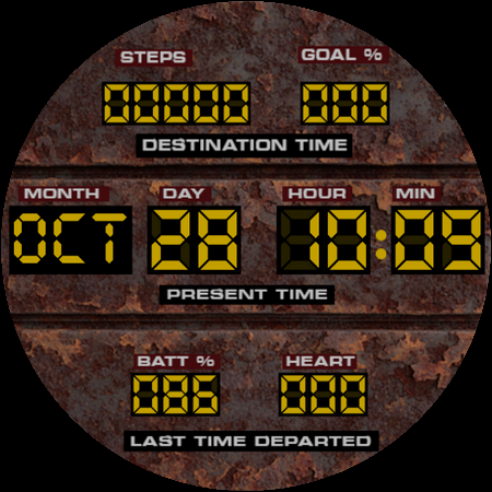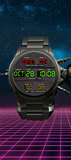 Back to the Future WatchFace is a unique Wear OS watch face that brings the charm of the iconic sci-fi series to your wrist. This digital display captures the essence of the 1980s, blending high-tech functionality with retro aesthetics inspired by the DeLorean dashboard. The watch face features a dynamic date display that shifts between past, present, and future, offering users an interactive experience. Alongside showing the time, it provides essential health and device metrics such as steps, daily step goal percentage, heart rate, and battery level. Compatible exclusively with Wear OS devices, this watch face updates in real-time, ensuring users have the most current information at their fingertips. Whether you are a fan of the series or appreciate innovative design, Back to the Future WatchFace combines nostalgia, technology, and practicality into one stylish package.
