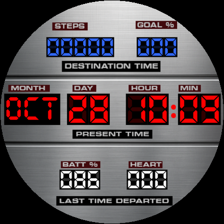 Back to the Future WatchFace offers a variety of features that make it stand out among other watch faces. Here are five notable aspects that users will appreciate. 1. Retro-Futuristic Design - Drawing inspiration from the DeLorean dashboard, this watch face merges 1980s aesthetics with modern technology, creating a visually striking and nostalgic experience. 2. Dynamic Date Display - The date function uniquely shifts between past, present, and future, echoing the time-travel theme of the series and providing an engaging user interface. 3. Health and Fitness Tracking - Users can view their steps, daily step goal percentage, and heart rate directly on the watch face, making it a practical tool for monitoring personal health metrics throughout the day. 4. Device Status Monitoring - With battery level indicators prominently displayed, users can easily keep track of their device's power status without navigating through menus. 5. Customizable Interface - While maintaining its signature style, Back to the Future WatchFace allows users to customize certain elements to suit their preferences, ensuring both form and function are optimized.