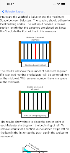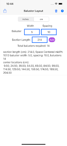 Baluster Layout stands out as a feature rich application tailored for baluster installation projects Here are five notable features that make it indispensable 1 Precision Spacing Calculation - The app calculates optimal baluster spacing ensuring compliance with building codes which is crucial for safety and code adherence 2 Support for Multiple Rail Sections - Users can manage complex projects involving various railing sections each with distinct dimensions making it versatile for different types of constructions 3 Unit Flexibility - With options to choose between inches and centimeters the app accommodates diverse project specifications catering to international standards 4 Detailed Results Breakdown - It provides comprehensive information about the number of balusters needed per section along with their exact placement offering clarity and precision 5 Time Saving Solution - By automating the calculation process the app significantly reduces the time and effort required for planning thus allowing users to focus more on the construction aspect
