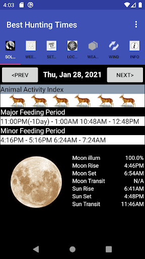 Best Hunting Times is a specialized weather application designed to help hunters and outdoor enthusiasts determine the optimal periods for hunting based on real-time data and solunar theory. This app provides users with detailed information including weather conditions wind forecasts and moon phase data all calculated precisely in real time. Best Hunting Times can be used on mobile devices making it an essential tool for planning successful hunting trips or other outdoor activities. One of the standout features of this app is its ability to offer location-specific insights whether through automatic GPS manual entry or map selection ensuring that users get accurate data tailored to their exact whereabouts. Additionally the app offers both weekly and daily views allowing users to plan ahead effectively. Overall Best Hunting Times is an excellent application for anyone looking to maximize their chances of success during hunting excursions by leveraging precise environmental data and predictive analytics.