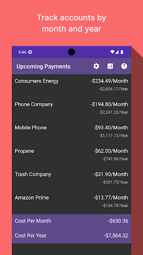 Bill Manager is a finance application designed to help users efficiently manage their bill payments and financial obligations. The app provides a comprehensive overview of upcoming bills, detailing which payments are still pending from the current date up to the user's next payday. It not only lists the amounts due but also specifies the payment deadlines, ensuring users never miss a payment. Additionally, Bill Manager offers an analytics view that allows users to examine their spending patterns by categorizing costs on a monthly and yearly basis. This feature helps users understand their financial habits better and plan accordingly. Available on mobile platforms, this app is particularly useful for individuals who want to maintain a clear picture of their financial commitments and improve their budgeting skills. Overall, Bill Manager serves as an essential tool for anyone looking to gain control over their finances and ensure timely bill payments.