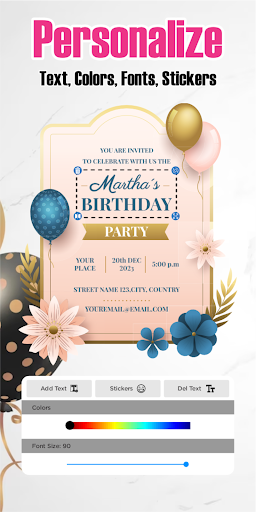 Birthday Invitation Card Maker is a specialized application designed for creating personalized and visually appealing birthday invitations. This app caters to a wide audience, from individuals planning intimate gatherings to professionals organizing corporate events. The core functionality revolves around providing users with a vast selection of free invitation templates that can be customized with personal images, text, stickers, and various design elements. Birthday Invitation Card Maker supports both portrait and landscape layouts, giving users complete creative control over their designs. In addition to traditional card formats, the app allows users to create e-cards and video invitations, while also offering features like birthday song recording. The application maintains an extensive library of designs suitable for different age groups and occasions, ensuring fresh content is always available. Its value lies in enabling users to create professional-quality invitations without design experience, making it an essential tool for event planners, party organizers, and anyone looking to add a personal touch to their celebrations.