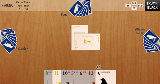 Blackbird is a digital card game that brings the classic ROOKu00ae experience to your mobile device. This strategic trick-taking game challenges players to outbid and outplay the computer opponent by declaring trump and taking tricks. The game offers two distinct rule sets Kentucky Discard and Western Wyoming providing varied gameplay experiences. Players can further customize their experience with multiple rule variations such as including 1s worth 15 points using the special Blackbird card or adjusting the winning score. Available on Android devices Blackbird is perfect for card game enthusiasts who enjoy strategic bidding and trick-taking mechanics. The game's flexibility in rule customization ensures endless replayability while its competitive nature makes it ideal for those who enjoy challenging AI opponents. Whether you're a fan of traditional card games or looking for a customizable gaming experience Blackbird delivers hours of engaging entertainment.