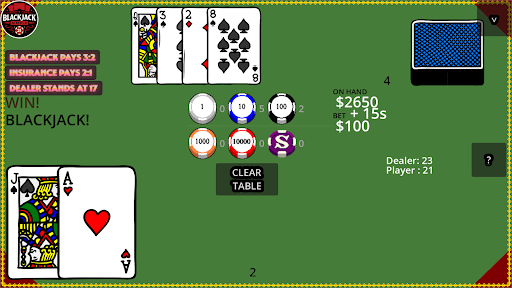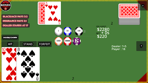 Blackjack Simple is a digital casino game that brings the classic card game experience to mobile devices It offers a straightforward single player blackjack experience where users compete against a computer controlled dealer One of the key advantages of this app is its commitment to providing an uninterrupted gaming experience with no advertisements or in app purchases The game includes various progression based unlocks and rewards such as table color changes menu customizations and seven unique card themes These features enhance replayability while maintaining the traditional blackjack rules Players can customize their experience by choosing between 1 to 10 decks for each game with 4 being the default setting The app also incorporates essential blackjack mechanics like doubling down splitting forfeiting insurance and side bets making it a comprehensive package for both casual players and blackjack enthusiasts Available on Android devices this app provides an authentic casino experience without any additional costs or distractions