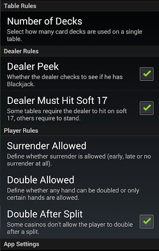 BlackJack Trainer Pro stands out with its diverse feature set tailored for serious blackjack enthusiasts. Here are five key features that make this app exceptional 1. Customizable Table Configurations - Users can set up any table scenario from 1-8 decks with options for dealer peek surrender and soft 17 rules providing unparalleled flexibility for targeted practice. 2. Focused Training Modes - The app allows users to concentrate on specific hand types such as soft hands and pairs helping them master complex decisions in particular game situations. 3. Comprehensive Feedback System - After each decision users receive immediate feedback on their choices along with access to a detailed strategy table for the selected house rules. 4. Advanced Statistics Tracking - Players can monitor their overall correct decision rate and track progress through detailed statistical analysis identifying areas for improvement. 5. Realistic Simulation Environment - The app creates an authentic casino-like experience without real-money gambling enabling users to practice and prepare for actual casino visits effectively.