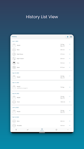Body Measurement Tracker is a specialized health and fitness application designed to help users monitor their weight loss or muscle gain progress effectively. This app provides an easy-to-use interface that simplifies the process of recording body measurements, making it faster than traditional methods like notes or spreadsheets. Users can track various body parts and easily identify which areas have been measured on a given day. The app offers multiple data visualization options including charts, tables, and lists, allowing users to interpret their progress in a way that suits them best. Integration with Google Fit enables synchronization with other health apps, providing a comprehensive view of one's fitness journey. With features like past measurement entry, body fat estimation, and BMI calculation, this app caters to both beginners and advanced fitness enthusiasts. Overall, Body Measurement Tracker serves as an essential tool for anyone looking to systematically track and improve their physical health.