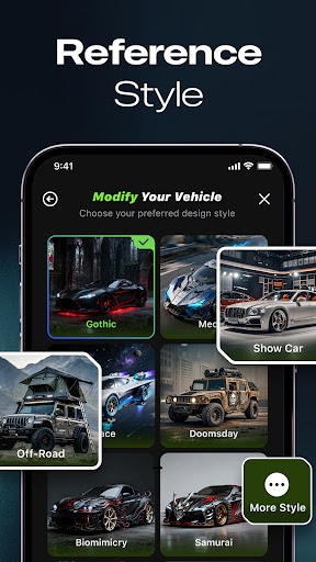 Car Editor & Al Car Designer is a popular app with a ton of features and customization options. Here are five of our favorites: 1. AI Car Design Generator - Upload a photo of your car, and let AI create stunning modification concepts from sporty and futuristic to luxury and retro. 2. Smart Detail Editing - Tap or mark any area, and instantly replace colors, lights, accessories, or textures. The AI automatically blends your changes seamlessly. 3. One-Tap Style Transformation - Choose from a wide range of styles like cyberpunk, racing, off-road, or minimalist, and watch your car transform while keeping its original structure. 4. Unlimited Creative Exploration - Save, compare, and share your favorite designs. Get endless inspiration for real-life mods or just enjoy creating your dream rides. 5. Subscription Benefits - Enjoy advantages such as multi-image generation, unlimited generation, ad removal, and access to paid styles and video generation.