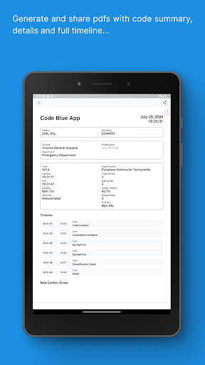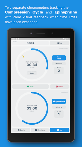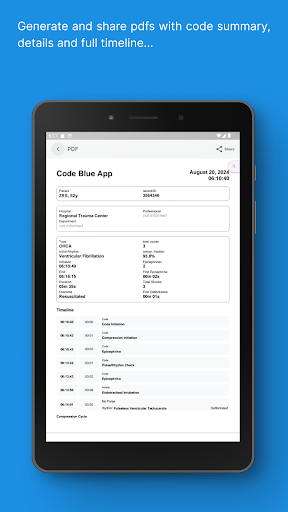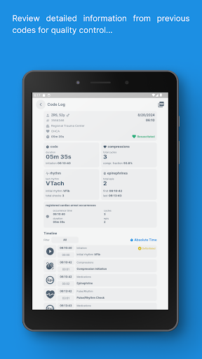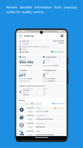 Code Blue CPR Timer is a specialized medical application designed to assist healthcare professionals during critical cardiac arrest situations. This app provides precise and intuitive tools to track and register important events in real-time, making it an invaluable resource in high-pressure healthcare environments. The dual chronometer feature allows users to monitor both CPR compression cycles and epinephrine doses simultaneously, ensuring optimal timing for life-saving procedures. Code Blue CPR Timer also offers a full log functionality that provides a concise summary and detailed timeline of all registered events, allowing medical teams to maintain accurate records. Available on mobile platforms, this app is an essential tool for emergency response teams who need reliable and efficient support during cardiac arrest occurrences. With its customizable settings and comprehensive features, Code Blue CPR Timer is an indispensable resource for optimizing CPR performance and improving patient outcomes.