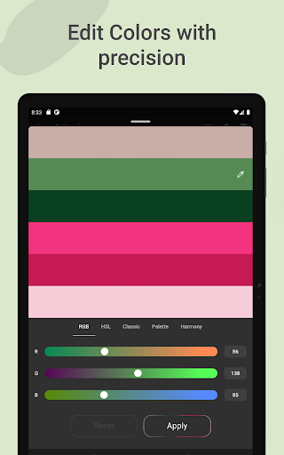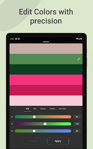 Color Gear is an essential application for designers and artists seeking to create harmonious color palettes with precision. This app simplifies the process of understanding color theory by providing users with tools such as the RGB and Itten Color Wheels which cater to different needs in digital and traditional art forms. Users can generate color schemes based on specific HEX or RGB codes or extract palettes directly from images using advanced algorithms or manual selection with the Hex Color Picker. The app supports advanced editing options allowing adjustments to Hue Saturation and Lightness ensuring each palette is perfectly suited to the user's needs. With the ability to save palettes alongside images and share them in various formats including RGB HEX LAB HSV HSL and CMYK Color Gear proves to be a versatile tool for both professional and amateur creatives. Available on mobile platforms this app works offline making it accessible anytime anywhere enhancing creative workflows.