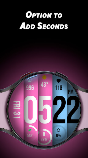 Colors Fall 3 - Watch face offers a variety of customization options that make it stand out among other watch faces. Here are five notable features 1 Bold Color Options - With 30 unique colors available, users can choose a shade that best represents their personality or matches their outfit, providing a truly personalized experience. 2 Custom Complications - The app includes 7 custom complications, allowing users to display important information directly on their watch face for quick access. 3 Shadow Effect - Users have the option to turn on shadows, adding depth and dimension to the watch face for a more dynamic look. 4 Rotating Seconds Display - A unique feature where the seconds tick rotates along the edge of the watch, offering an innovative way to track time. 5 Time Format Flexibility - Supporting both 12 and 24-hour formats, this watch face caters to different preferences and regional standards, ensuring universal usability.