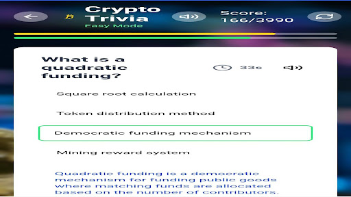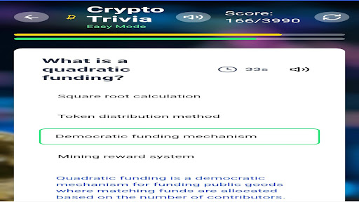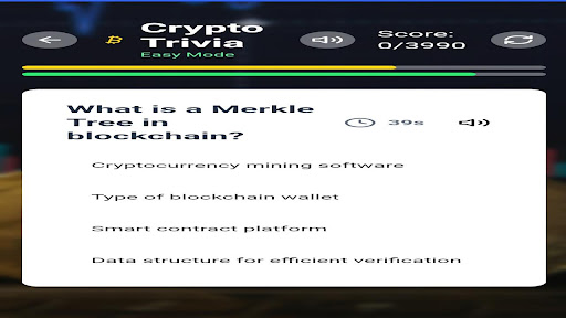 Crypto Trivia is an educational game designed to test and enhance users' knowledge of cryptocurrency and blockchain technology. This trivia app offers daily questions covering a wide range of topics from Bitcoin basics to advanced blockchain concepts. With multiple difficulty levels, the app caters to both beginners and experienced crypto enthusiasts. Each question comes with detailed explanations, helping users understand the reasoning behind correct answers. Available on mobile platforms, Crypto Trivia allows players to compete with others while improving their crypto literacy. The app's engaging format makes learning about digital currencies fun and rewarding. Overall, Crypto Trivia serves as an excellent tool for anyone looking to expand their understanding of the crypto ecosystem in an interactive way.