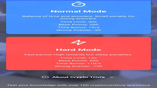 Crypto Trivia stands out with its comprehensive approach to cryptocurrency education. Here are five key features that make it unique 1. Multiple Difficulty Levels - The app offers questions ranging from beginner to advanced, ensuring a suitable challenge for users at any knowledge level. 2. Detailed Explanations - Every question includes a thorough explanation of the correct answer, helping users learn as they play. 3. Daily Questions - Users can look forward to new questions every day, keeping the content fresh and engaging. 4. Competitive Leaderboards - Players can compare their scores with others, adding a competitive element to the learning process. 5. Educational Focus - The app goes beyond simple trivia by providing valuable insights into blockchain technology and the crypto ecosystem.