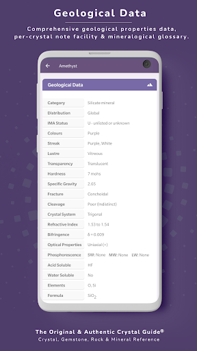 Crystal Guide Pocket Edition is an extensive reference application designed for crystal enthusiasts and professionals alike. This app serves as a comprehensive encyclopedia providing detailed information on crystals gemstones rocks and minerals. Users can explore a vast database featuring beautiful images scientific data geological facts and metaphysical properties of each entry. The app caters to various interests including collectors geologists and those interested in crystal healing. With features like advanced search filters personal specimen cataloging and custom tagging users can easily navigate and manage their collections. Available on mobile platforms this app offers a portable solution for learning about and tracking mineral specimens. Regular updates ensure the content remains current making it an invaluable resource for expanding one's knowledge in mineralogy and crystal therapy.