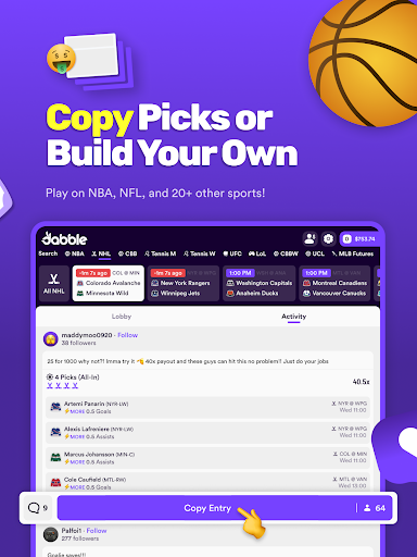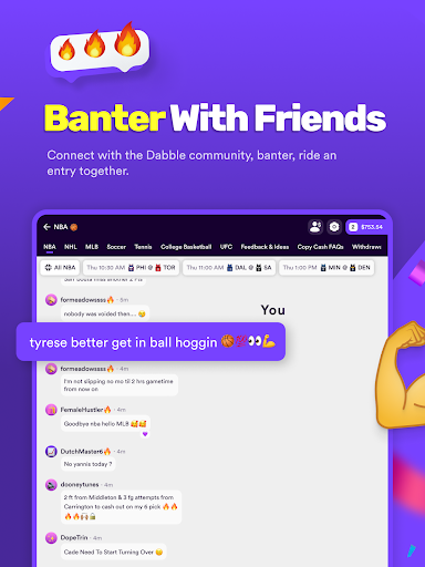 Dabble is packed with innovative features designed to enhance the fantasy sports experience. Here are five key highlights: 1. Wide Range of Sports Options - Users can access fantasy contests for major sports leagues such as NFL, NBA, MLB, NHL, and even niche sports like fantasy cricket and esports, catering to diverse sporting interests. 2. Copy Entry Functionality - This unique feature enables users to replicate successful entries from top players and experts directly into their accounts, simplifying the selection process for beginners. 3. Social Integration and Banter - Dabble incorporates chat functionalities and dedicated Banter channels where users can interact discuss strategies and celebrate victories with fellow sports fans creating a lively community atmosphere. 4. Lucrative Rewards System - Offering substantial prize pools and the chance to multiply initial stakes by up to 5,000x, Dabble incentivizes strategic gameplay and rewards insightful predictions. 5. Secure Payment Processing - Prioritizing user safety, Dabble ensures fast and reliable payouts processing thousands of transactions daily which reinforces its credibility as a trusted DFS provider.