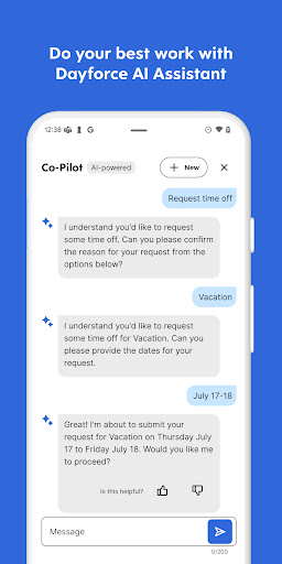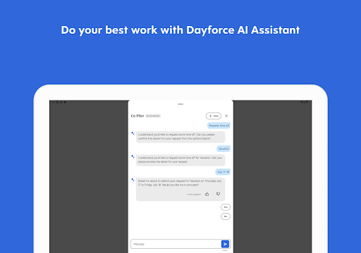Dayforce is a feature-rich business app designed to streamline workplace management. Here are five key features that make it stand out 1. Mobile Time Tracking - Users can clock in and out directly from their mobile devices, eliminating the need for traditional timecards and ensuring accurate time tracking. 2. Real-Time Earnings Updates - The app provides real-time access to earnings and allows eligible users to receive pay before payday, offering increased financial flexibility. 3. Schedule Management - Employees can view their work schedules, request time off, and swap shifts seamlessly, enhancing work-life balance. 4. Manager Tools - For people leaders, Dayforce offers essential management features like approving timesheets and responding to employee requests directly from the app. 5. Cross-Device Functionality - With support for multiple devices, users can manage tasks efficiently whether they're using a smartphone, tablet, or desktop, ensuring maximum accessibility.