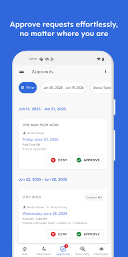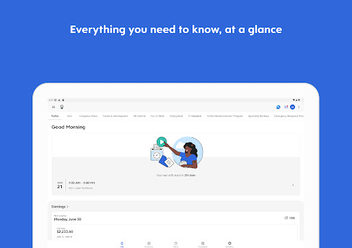 Dayforce is a business application that empowers employees to take control of their work and personal life through streamlined management tools. This app allows users to efficiently handle various tasks across devices without the need for paperwork. Core functionalities include clocking in and out, managing schedules, swapping shifts, and reviewing benefits. Additionally, Dayforce offers real-time earnings tracking and early pay access, providing users with greater financial flexibility. For managers, the app provides essential tools at their fingertips, enabling them to approve timesheets and respond to requests on the go. Available on mobile platforms, Dayforce ensures users stay connected and in control anytime, anywhere. While feature availability depends on employer setup, the app's comprehensive suite makes it an invaluable tool for both employees and managers seeking efficient workplace management.