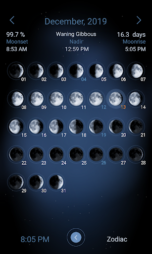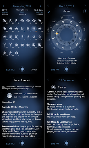 Deluxe Moon is packed with features that cater to both casual users and professionals Here are five notable ones 1 MOON PARAMETERS - The app provides detailed moon data including precise phase times age illumination percentage and distance from Earth These parameters help users understand the moon's position and its effects 2 EXTENDED FEATURE SET - With astronomical events twilight tables and eclipse information Deluxe Moon goes beyond basic moon tracking offering a complete celestial experience 3 ZODIAC INFORMATION - Users can explore animated Zodiac circles view exact moon positions and track sign changes This feature is perfect for astrology enthusiasts 4 ASTROLOGY TOOLS - Detailed descriptions of moon days zodiac signs and mansions provide insights into personal characteristics recommendations and precautions 5 GARDENING ADVICE - Based on current moon phases the app offers specific gardening tips helping users optimize planting and harvesting schedules