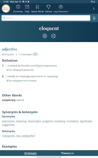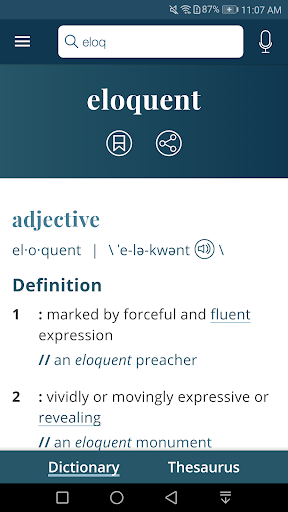 Dictionary is packed with useful features designed to enhance vocabulary and language skills. Here are five notable highlights: 1. Integrated Thesaurus - With over 200,000 word choices and usage examples, this feature helps users find the perfect word alternatives. 2. Vocabulary-Building Quizzes - Fun and fast-paced quizzes allow users to expand their lexicon or test their existing knowledge in an interactive way. 3. Voice Search Functionality - Users can conveniently look up words by speaking them, eliminating the need for precise spelling. 4. Audio Pronunciations - Real English speakers provide authentic pronunciations, offering users accurate audio references for correct word usage. 5. Favorite Words and Search History - This feature enables users to track important words and sync their favorites across multiple devices, creating a personalized learning experience.