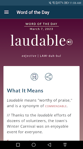 Dictionary offers numerous advantages for language learners and word enthusiasts. One of its biggest strengths is the ad-free experience, providing uninterrupted usage. The integrated thesaurus with extensive word choices and the new vocabulary quizzes make it an excellent tool for expanding one's lexicon. Audio pronunciations by real speakers and the Word of the Day feature add significant educational value. However, some drawbacks exist. Certain features like illustrations and voice search require an internet connection, which may limit accessibility for some users. Additionally, while the premium content offers valuable extras, it might come at an additional cost. Overall, Dictionary remains a top choice for anyone seeking a reliable and feature-rich English language reference tool.