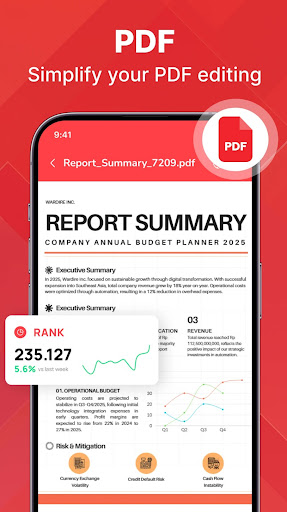 Document Viewer - PDF Reader is a versatile application that allows users to read, manage, and organize their documents efficiently. It offers a unified solution for viewing multiple document formats including PDF, Word, Excel, and PowerPoint files. The app provides fast and smooth performance with instant file opening and easy navigation. Its smart file management system automatically detects documents on the device, allowing users to sort, search, and access recent or favorite files effortlessly. Designed for various user groups such as students, professionals, and remote workers, this app supports different lifestyles and needs. Whether you need to study lecture notes, review business reports, or access project files on the go, Document Viewer - PDF Reader serves as an ideal tool. The app works offline, ensuring privacy and security while offering a clean and user-friendly interface.