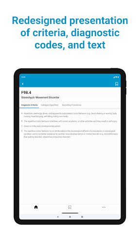 DSM-5-TR Diagnostic Criteria stands out with its comprehensive set of features tailored for psychiatric professionals. Here are five key highlights 1 Enhanced User Interface - The app boasts a fully redesigned and intuitive interface improving navigation and accessibility for users. 2 Dual-Mode Functionality - Users can seamlessly switch between diagnostic criteria and classification streamlining the diagnostic process. 3 Updated Diagnostic Content - DSM-5-TR includes the latest revisions such as the addition of Prolonged Grief Disorder and over 70 clarified criteria sets ensuring up-to-date clinical references. 4 Powerful Search Tools - An advanced search function allows users to quickly locate specific disorders acronyms codes and symptoms saving valuable time. 5 Offline Access and Customization - The app provides offline access bookmarking highlighting and note-taking features empowering users to personalize their reference experience even without an internet connection.