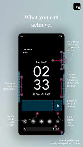 Edgest Edge Gestures & Control is a feature-rich app designed to enhance your device's usability. Here are five of our favorite features: 1. Smart Edge Gestures - Perform essential functions like opening apps, adjusting settings, or returning to the home screen with simple swipe, tap, or long-press gestures along the screen's edge. 2. Volume and Brightness Control - Adjust your device's volume and brightness instantly without opening any menus, providing quick access to these frequently used settings. 3. Custom Gesture Shortcuts - Personalise your experience by assigning specific actions to custom gestures, allowing you to launch apps, open menus, or trigger system commands effortlessly. 4. Lock Screen Widgets - Add widgets to your lock screen for single-tap or double-tap locking options, eliminating the need to press the power button to secure your device. 5. Quick Settings Tile - Access your most-used actions faster with a dedicated quick settings tile, streamlining your ability to manage media playback or execute custom actions without leaving your current app.