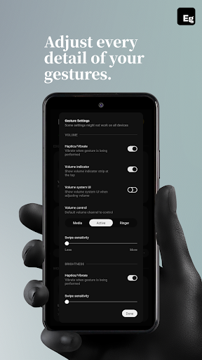 Edgest Edge Gestures & Control is a personalisation application that allows users to take full control of their device through intuitive gesture navigation and customisable shortcuts. It offers a variety of features including edge gestures for quick access to favourite apps, volume and brightness control directly from the screen's edge, and personalised gesture shortcuts for launching apps or triggering system actions. Edgest can be used on Android devices, making it a versatile tool for enhancing smartphone productivity and user experience. One of the best things about Edgest is its simplicity and focus on user experience, with no ads, tracking, or extra charges. This means that users can enjoy a seamless and customisable navigation experience without distractions. And if you're using Edgest on your Android device, you can even control media playback, manage notifications, and lock your screen with simple gestures. Overall, Edgest is an excellent application for anyone looking to boost their device's functionality and simplify daily tasks through smart gesture controls.