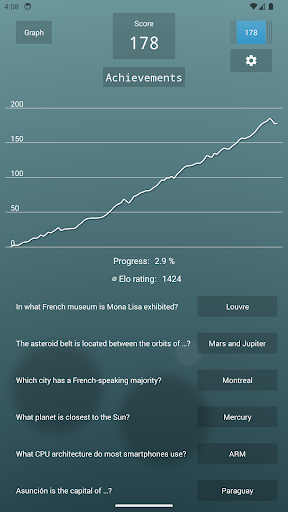Endless Quiz Pro is an advanced trivia application designed for knowledge enthusiasts who seek an ad-free quiz experience with extended features The app offers a comprehensive general knowledge assessment through various question categories and specialized game modes including Category Quiz Game Show and 20 Questions These modes provide diverse ways to test and enhance your understanding of subjects like history geography science and more One of the standout features is the ability to customize your learning experience by selecting specific categories and adjusting settings such as repeating incorrect answers or stopping after each question Additionally all questions are linked to Wikipedia articles allowing users to expand their knowledge base further Endless Quiz Pro tracks user progress through an Elo rating system and provides opportunities to compete with other players making it suitable for both casual learners and dedicated knowledge seekers