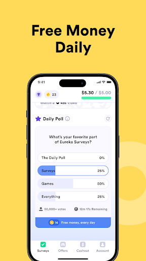 Eureka is a leading lifestyle application that enables users to earn money through various engaging activities. The app offers multiple earning avenues including paid surveys, brand check-ins, and daily polls. With over 4 million members and more than $42 million earned to date, Eureka stands out as a top-rated money-making platform. Available on both mobile and desktop, the app provides flexible earning opportunities for users worldwide. New members can start earning immediately with a welcome bonus and choose from multiple payout options including PayPal and gift cards. The app's strong community presence and high user satisfaction make it an excellent choice for those looking to monetize their opinions and time.