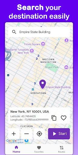 Fake GPS Go Pro stands out with its comprehensive set of features tailored for seamless location spoofing Here are five key highlights 1 Instant Location Change - With just a few taps users can teleport their GPS location anywhere in the world This feature is perfect for testing geolocation dependent apps or services 2 Custom Route Simulation - Users can create detailed routes by placing markers on the map Adjust speed settings and choose actions like stopping or looping when the route ends providing realistic movement simulation 3 Favorite Locations and Routes - Save frequently used spots and paths for easy access eliminating the need to reconfigure them every time you use the app 4 Multilingual Support - Available in 8 languages including English Spanish French and Indonesian this feature ensures accessibility for a diverse range of users worldwide 5 No Root Required - Unlike many similar tools Fake GPS Go Pro works on any device without needing root permissions offering flexibility and ease of use across different platforms