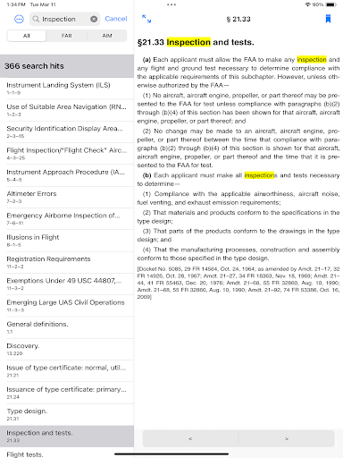 FAR/AIM stands out as a feature-rich application tailored for aviation professionals. Here are five notable features that make it an invaluable tool 1 Comprehensive Regulation Coverage - The app includes all relevant sections from 14 CFR and 49 CFR providing complete access to federal regulations affecting aviation operations. 2 Study by Certificate Lists - Users can focus their studies on regulations specific to their individual certificates such as Private Remote or Commercial pilot licenses optimizing their learning experience. 3 Text Search Functionality - With a powerful search feature users can quickly locate specific regulations advisory circulars or AIM sections saving valuable time during study or operation planning. 4 Customizable Reading Options - The app offers both portrait and landscape viewing modes along with adjustable text size making it easy to read and study comfortably. 5 Personal Study Tools - FAR/AIM allows users to highlight and bookmark important sections creating personalized study guides for more effective learning and reference.