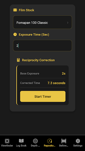 Film Photography Viewfinder offers a comprehensive suite of tools tailored for film photographers Here are five notable features 1 Digital Viewfinder Customization - Users can add and edit custom focal lengths providing flexibility for different camera setups and photography styles 2 Advanced Light Meter - This feature compensates for reciprocity failure and bellows extension offering an extensive f stop range up to 1024 and ISO settings as low as 025 It also includes a film stocks list that automatically selects ISO based on film speed 3 Exposure Log Book - This functionality allows photographers to maintain detailed records of their exposures Entries can be added directly from the light meter streamlining workflow and ensuring accurate tracking 4 Reciprocity Failure Timer - A simple yet effective countdown timer helps photographers manage long exposure times by calculating reciprocity failure durations 5 Depth of Field Calculator - Photographers can check depth of field across any format lens and distance with full frame conversion providing critical information for achieving desired focus effects