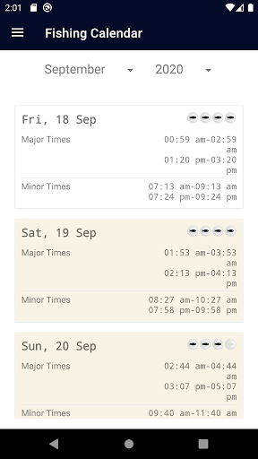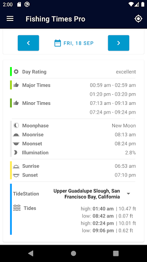 Fishing Times Pro is a specialized application designed for fishing enthusiasts who want to optimize their fishing experiences by planning around the best possible times The app provides detailed solunar data including major and minor fishing periods day ratings tide times and lunar information all presented in an easy-to-navigate 24-hour solunar clock view as well as a calendar format This makes it simple for anglers to identify peak fishing windows Fishing Times Pro can be used on mobile devices ensuring that users have access to critical fishing data wherever they go One of the standout features of this app is its minimalistic design which avoids cluttering the interface with unnecessary elements while maintaining a small footprint compared to similar apps Additionally the app supports multiple location management allowing users to plan fishing trips across different areas Overall Fishing Times Pro is an excellent tool for both casual and serious anglers who are looking to maximize their success on the water