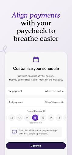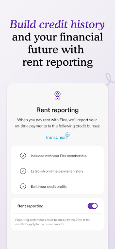 Flex Rent On Your Schedule is a financial application that allows users to manage their rent payments more effectively. It offers a unique solution by splitting monthly rent into smaller manageable payments helping users maintain their budget and pay rent on time. Flex Rent can be used on mobile devices making it a convenient tool for renters across the United States. One of the best things about Flex Rent is that it helps build credit history through timely payments. This means that users not only manage their rent better but also improve their financial standing. And if you're using Flex Rent on your smartphone you can easily track your payment schedules and manage your account. Overall Flex Rent On Your Schedule is an excellent application for modern renters who want flexibility and financial control. Whether you're looking for budget management credit building or convenient payment options it's a great choice.