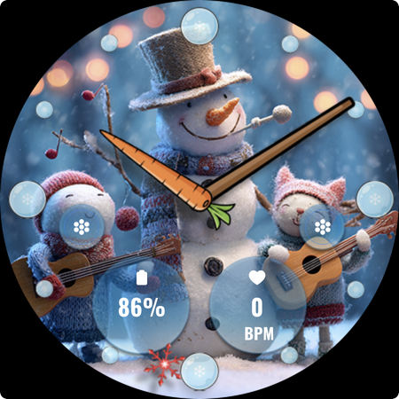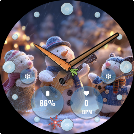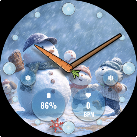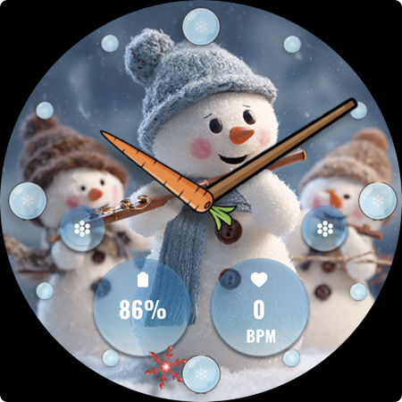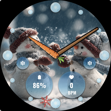 FLW105 Snowman Freeze Winter offers a range of features that enhance the Wear OS experience during the winter season. Here are five notable features 1 Analog Watch Hands - Traditional hour minute and second hands provide a classic time telling experience while maintaining the elegance of an analog watch face. 2 Custom Complications - Users can choose what information to display on their watch face such as weather updates calendar events or fitness stats allowing for personalized and relevant information at a glance. 3 Custom Shortcuts - Two customizable shortcuts enable quick access to frequently used functions like starting a workout controlling music or activating phone features streamlining daily tasks. 4 Winter Themed Images - Ten unique freeze winter images with delightful snowman illustrations offer a variety of seasonal scenes bringing the charm of winter directly to the smartwatch display. 5 Easy Customization - By pressing and holding then selecting Customize users can effortlessly change the background image adjust complications or modify shortcuts ensuring the watch face perfectly matches personal style and preferences
