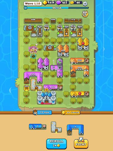 Fortress Merge Puzzle Defense offers a variety of features that enhance the strategic gameplay experience Here are five notable aspects 1 Merge Upgrade Mechanics - Players can combine different types of buildings to form stronger defensive structures This merging system adds depth to the strategic planning aspect as players must decide which buildings to merge for maximum effectiveness 2 Roguelike Gameplay - Each run through the game is unique with procedurally generated levels and enemy waves This ensures that players face new challenges every time they play keeping the experience fresh and exciting 3 Wave Defense System - As players progress they must defend their fortress from increasingly difficult waves of enemies The escalating challenge tests players tactical skills and ability to adapt under pressure 4 Puzzle Challenges - Alongside the main defense gameplay there are engaging puzzles that require problem-solving skills Completing these puzzles rewards players with resources or upgrades crucial for survival 5 High-Quality Graphics - The game boasts visually appealing environments and smooth animations enhancing the overall gaming experience These visuals complement the intense action making each battle feel dynamic and immersive