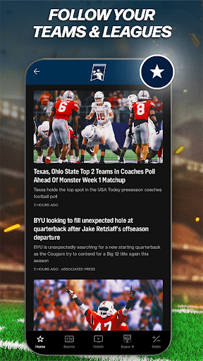 FOX Sports is a comprehensive sports application that allows users to follow their favorite sports teams and leagues with personalized content streams. It offers a variety of features including live game streaming, real-time score updates, tailored notifications, and expert analysis from FOX Sports personalities. FOX Sports can be used on both mobile devices and Android TV, making it a versatile tool for staying updated on MLB, NCAA, NASCAR, INDYCAR, MLS, and UFL seasons. One of the best things about FOX Sports is its ability to provide instant game updates and deliver breaking news chronologically. This means that users never miss a moment of their favorite sports. And if you're using FOX Sports on Android TV, you can even enjoy select games in 4K HD right from your living room. Overall, FOX Sports is an excellent application for sports enthusiasts who want to stay informed and engaged with their favorite sports. Whether you're looking for live game coverage, expert opinions, or betting tips, it's a great option.